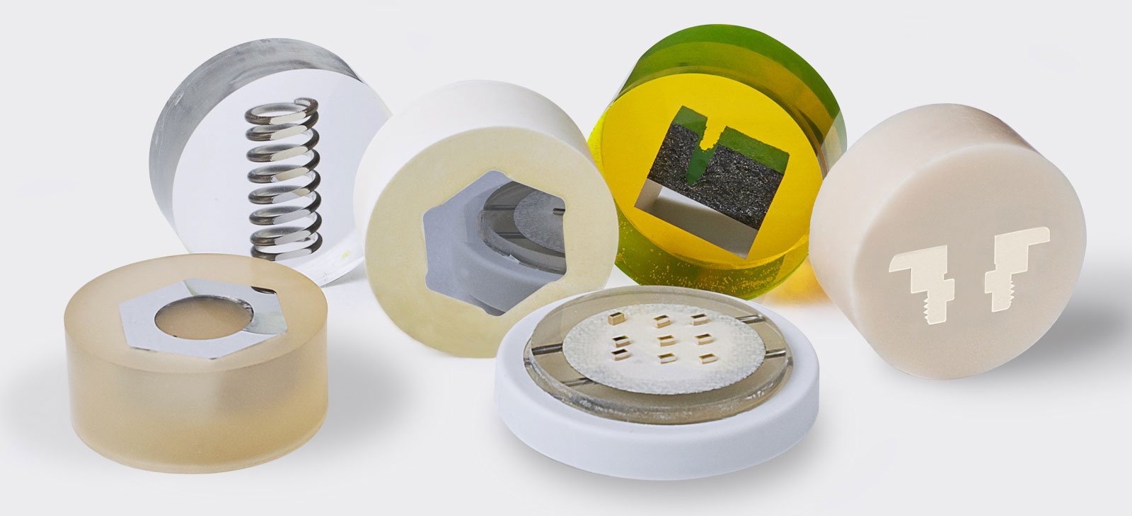 Scegliete tra un'ampia selezione di consumabili per l'inglobamento a caldo e a freddo, e l'impregnazione, tra cui resine per l'inglobamento chiare, trasparenti, a polimerizzazione rapida e senza contrazione - di diverse durezze, colori e dimensioni, con o senza conduttività.